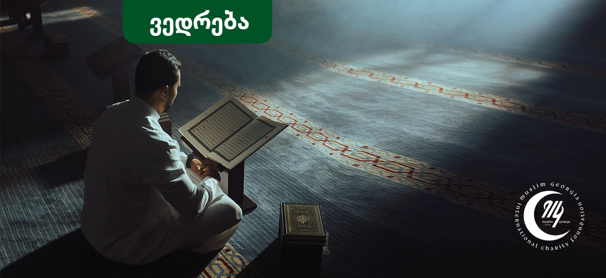 ღმერთო ჩემო, დაგვიდგინე წმინდა ყურანი ამიერ სამყოფელში მეგზურად და საფლავში მეგობრად, ხოლო ანგარიშგების დღეს შუამდგომლად, ჭეშმარიტ გზაზე მანათობელად, ცეცხლისგან დამცავ ფარად, სამოთხეში მუდმივ მეგობრად, ყველა სასიკეთო საქმის წინამძღოლად! შენი მადლით, შენი არსებობით, შენი სიკეთით, შენი წყალობით, ო, საუკეთესო ჯილდოს მომნიჭებელო და ყოვლად მწყალობელო დიადო ღმერთო, დაგვადგინე სწორ გზას ყურანის ჭეშმარიტებით. დაგვიფარე მისი მეშვეობით. დაგვიცავი ცეცხლისგან მისი საშუალებით. სამოთხეში დაგვამკვიდრე მისი შუამდგომლობით. აგვამაღლე მისი მადლით. დაფარე ჩვენი შეცოდებანი მისი კითხვით.