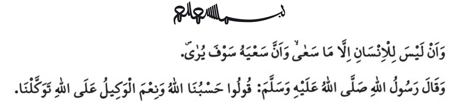 მუსლიმის ვალია იცხოვროს შემდეგი ცნობიერებით: „ზომები ადამიანისგანაა, განჩინება — ალლაჰისგან“, და დაუღალავად, დღე-ღამ იშრომოს.