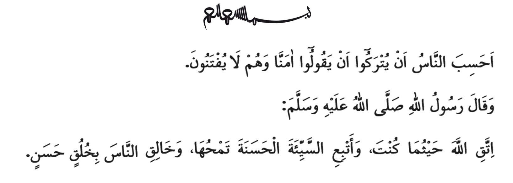 ნუთუ ჰგონიათ ადამიანებს, რომ ამაოდ იქნებიან მიტოვებულნი და არ გამოიცდებიან, თუ მხოლოდ იტყვიან „ვირწმუნეთ“?“ (ანქებუთი, 29/2)