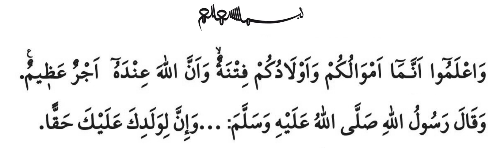„და იცოდეთ, რომ თქვენი ქონება და თქვენი შვილები ცდუნებაა, და უეჭველად, ალლაჰთანაა დიდი საზღაური! (ენფალი, 8/28)