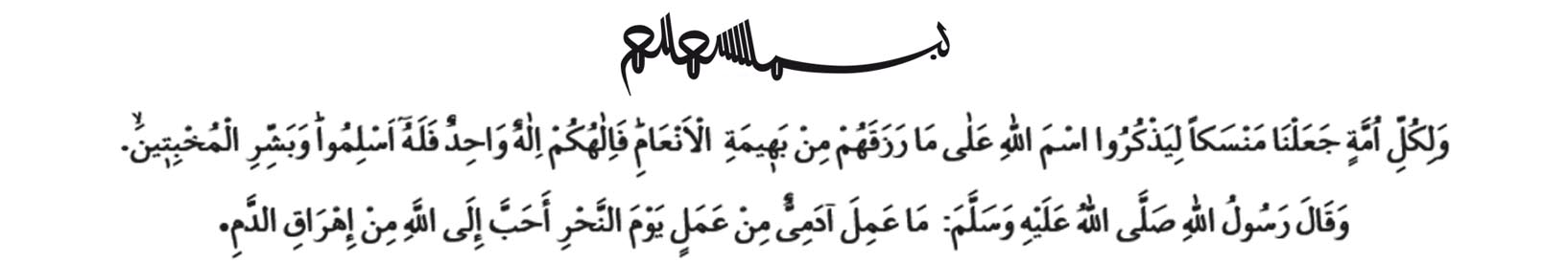 ყოველი თემისთვის ჩვენ დავადგინეთ მსხვერპლშეწირვის ადგილი, რათა მათ ახსენონ ალაჰის სახელი საქონელზე, რომელიც მან უბოძა. თქვენი ღვთაება  ერთადერთი ღმერთია! მაშ, იყავით მისი მორჩილნი! შენ კი ახარე მორჩილთ!… (ჰაჯი 22/34)