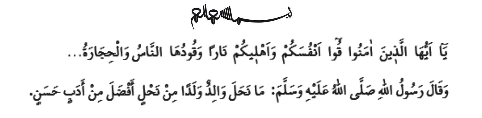 „ჰეი თქვენ, რომელთაც ირწმუნეთ! დაიცავით თქვენი სულნი და თქვენი ოჯახი ცეცხლისგან, რომლის საწვავი ადამიანები და ქვებია…“ (თაჰრიმი, 66/6)