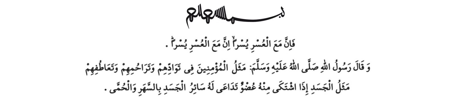 „მორწმუნენი ერთმანეთის სიყვარულსა და შემწყნარებლობაში ერთი სხეულის მსგავსნი არიან. როდესაც სხეულის ერთი რომელიმე ორგანო ავადდება, სხვა ორგანოებიც უძილობითა და მაღალი სიცხით ამ ტკივილს იზიარებენ“. (იხ. მუსლიმ, „ბირ“ 66)
