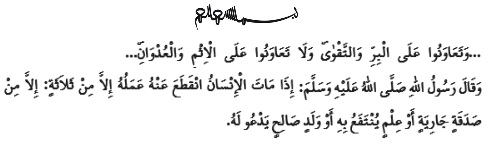 წმინდა ყურანში უზენაესი გამჩენი ასე ბრძანებს: „შეეწიეთ ერთმანეთს ღვთისმოსაობასა და ღვთისმოშიშობაში, მაგრამ არ შეეწიოთ ერთმანეთს ცოდვასა და მტრობაში. და გეშინოდეთ ალლაჰისა, უეჭველად, ალლაჰის საზღაური სასტიკია!“ (მაიდე, 5/2)