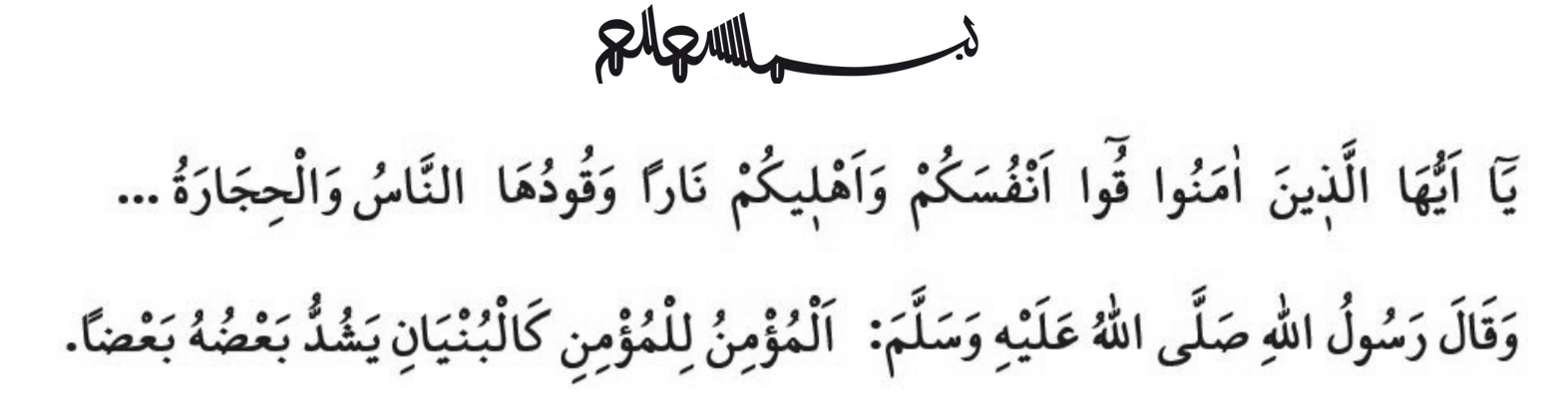 ხუტბას კი შემდეგი აიათით დავასრულებ: ჰეი თქვენ, რომელთაც ირწმუნეთ! დაიცავით თქვენი თავი და თქვენი ოჯახი ცეცხლისგან, რომლის საწვავი ადამიანები და ქვებია…“ (სურა თაჰრიმი, 66/6)