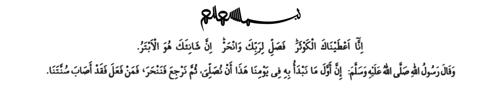 ჰადისის მიხედვით კი შუამავალი ბრძანებს შემდეგს: „დღეს უპირველესი საქმე ბაირამის ნამაზის ლოცვა, შემდეგ კი მსხვერპლის შეწირვაა. ვინც ასე მოიქცევა ჩვენი სუნნეთის მიმდევარი იქნება“. (იხ. ბუჰარი, „იდეინ“3)