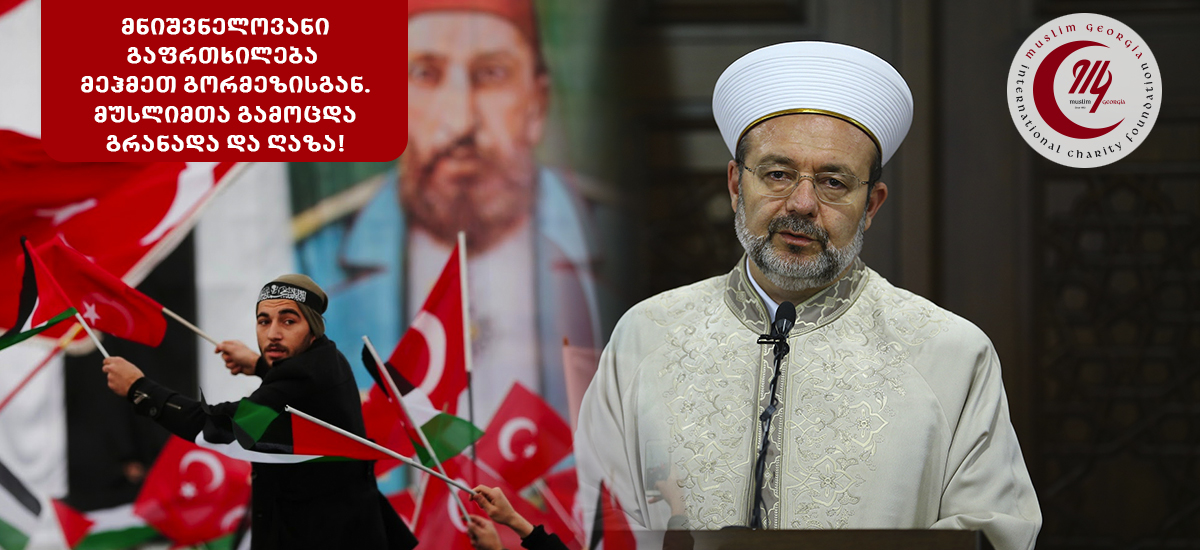 დღეს ღაზას ორი პრობლემის გამო ვერ ვეხმარებით, რადგან ყველა მუსლიმური  ქვეყნის სათავეში ჯემ სულთანი  დგას და ის ჯემ სულთნები სხვების ხელში არიან ტყვეობაში. ამას ჩვენც ყველანი კარგად ვხედავთ. მაგრამ არის მოვალეობა, რომელიც ისტორიამ დაგვაკისრა. ვიმედოვნებ, რომ ყოვლისშემძლე ღმერთი მოგვცემს ძალას, რომ ეს უსამართლო ალყა დავასრულოთ.