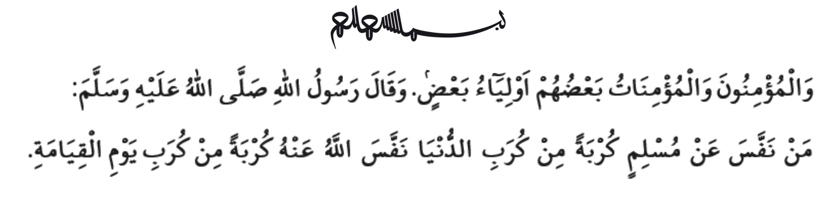 „შეეწიეთ ერთმანეთს ღვთისმოსაობასა და ღვთისმოშიშობაში, მაგრამ არ შეეწიოთ ერთმანეთს ცოდვასა და მტრობაში. და გეშინოდეთ ალლაჰისა, უეჭველად, ალლაჰის საზღაური სასტიკია!“ (მაიდე, 5/2)
