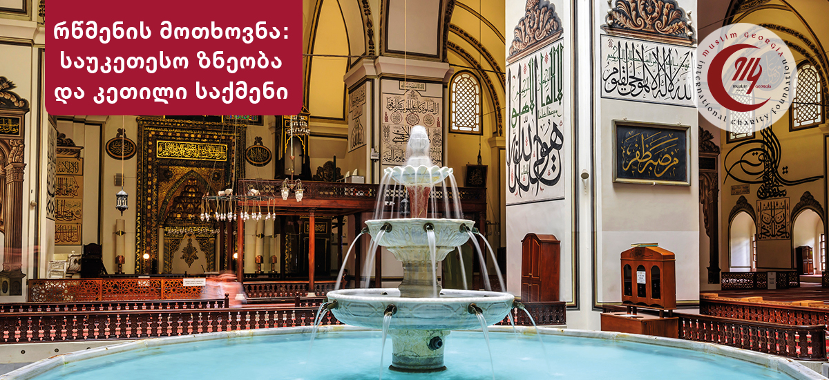 რწმენის მაჩვენებელი და მისი ასახვა ცხოვრებაში კეთილი საქმეებია. კეთილი საქმეა ღვთისადმი დადებული მორჩილების აღთქმისადმი ერთგულების გამოვლენა, მთელი არსებით მასზე მინდობა და ჩვენი რწმენის ასახვა როგორც როგორც ჩვენს სიტყვებში, ისე პრაქტიკულ ცხოვრებაში. ეს არის მშვიდობიანი თანაცხოვრება საკუთარ თავთან, ოჯახთან და გარემოსთან ერთად. ყოვლისშემძლე ალლაჰმა ყურანში ერთად მოიხსენია რწმენა და კეთილი საქმენი და ჯილდო აღუთქვა მათ, ვინც რწმენას კეთილი საქმეებით ალამაზებს: