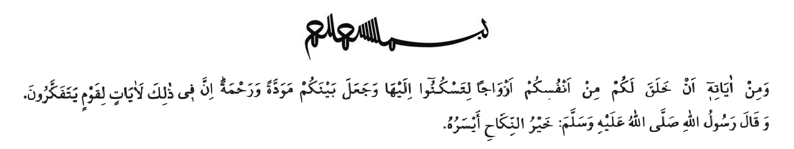 ქორწინება ღვთის ბრძანება და შუამავალის სუნნეთია. ეს არის იმ მნიშვნელოვანი გზის დასაწყისი, რომელიც ამქვეყნად ბედნიერებასა და ბარაქას მოგვიტანს, ხოლო საიქიოში სამოთხით დაგვაჯილდოვებს. როგორც ძვირფასი შუამავალი ბრძანებს: ქორწინება სარწმუნოების ნახევრის აღსრულებას წარმოადგენს. (იხ. ბეიჰაქი, „შუაბულ იმან“ 4, 382)