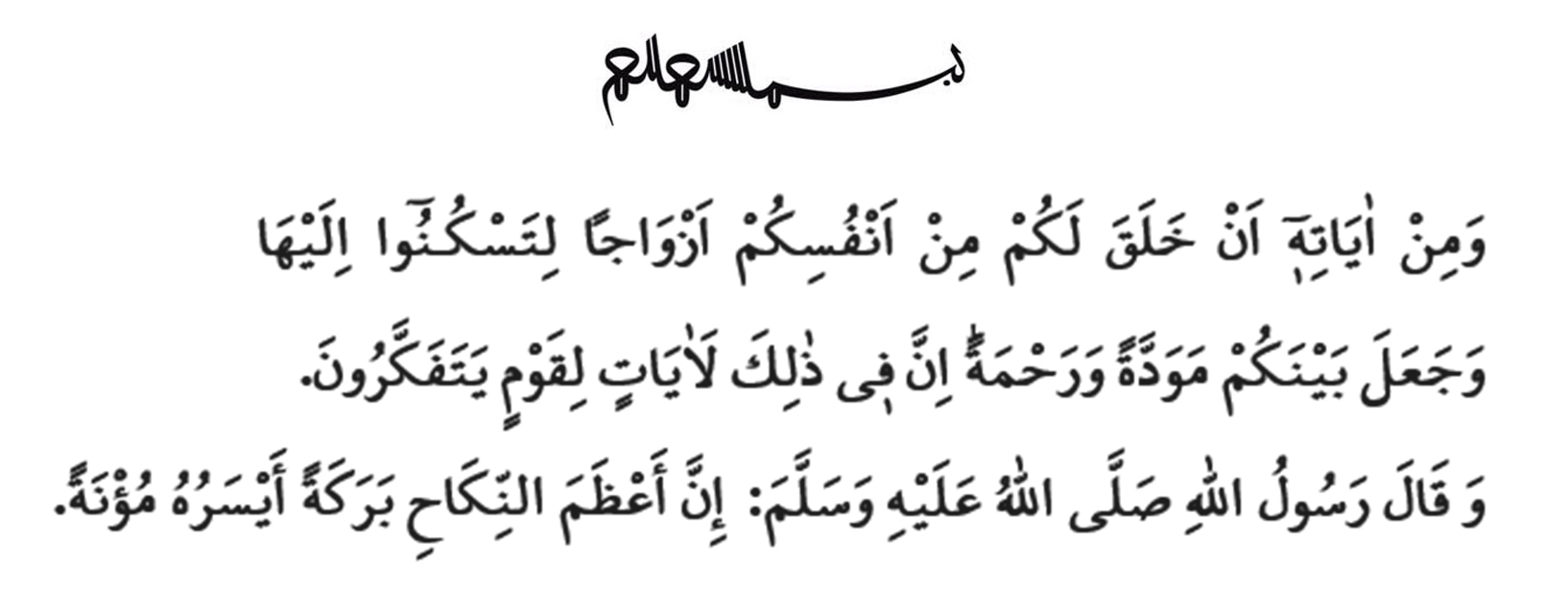 „მისი სასწაულებიდანაა ისიც, რომ თქვენგანვე გააჩინა თქვენი მეწყვილე, რათა იპოვოთ მასში სიმშვიდე, დაგიდგინათ ერთმანეთში სიყვარული და მოწყალება. უეჭველად, ამაში სასწაულებია მოაზროვნე ხალხთათვის!“ (რუმი 30/21)