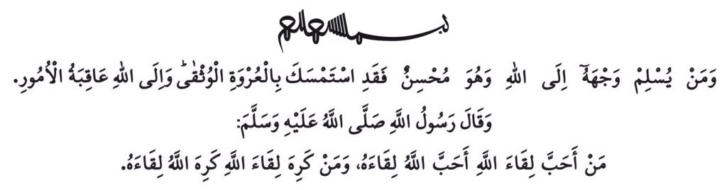 „ვინც ჰმორჩილებს ალლაჰს თავისი არსით და იგი კეთილის მქმნელია, ის ჩაეჭიდა საიმედო საყრდენს და ალლაჰთანაა ყოველი საქმის აღსასრული!“ (ლოყმან 31/22)