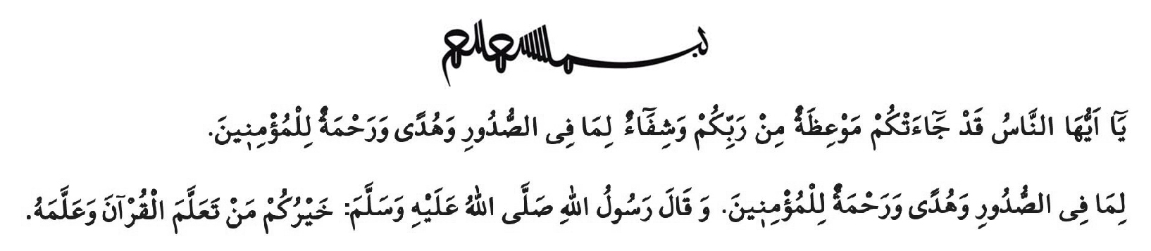 „ჰეი, ხალხო[1]! თქვენთან ნამდვილად მოვიდა შეგონება[2] თქვენი ღმერთისგან განკურნებად იმისა, რაც გიზით გულებში, ჭეშმარიტ გზად და წყალობად მორწმუნეთათვის!“(იუნუსი 10/57)