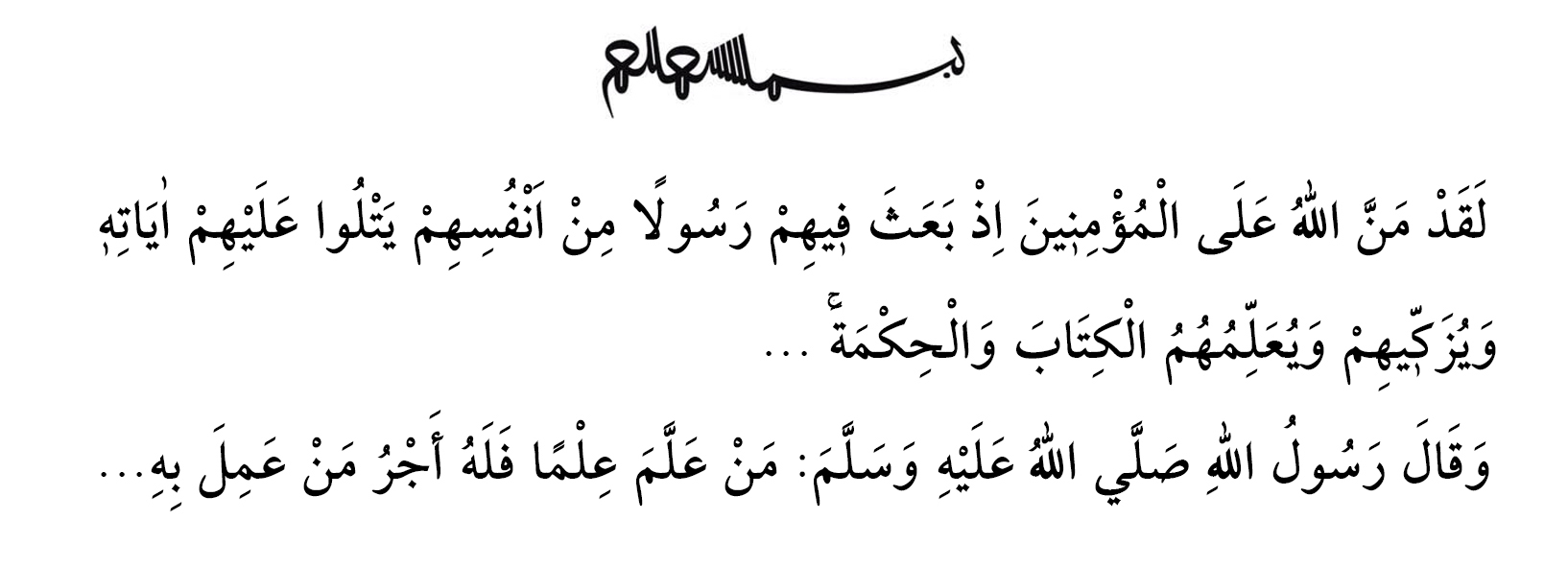 წმინდა ყურანის აიათში უზენაესი გამჩენი ასე ბრძანებს: „მოჰმადლა ალლაჰმა მოწყალება მორწმუნეებს, როცა მოუვლინა მათ შუამავალი მათივე წიაღიდან, რომელიც უკითხავს მათ (ალლაჰის) აიათებს, განწმენდს მათ, ასწავლის წიგნსა და სიბრძნეს, თუმცა მანამდე იყვნენ ისინი ცხად გზააბნევაში“. (ალი იმრანი, 3/164)