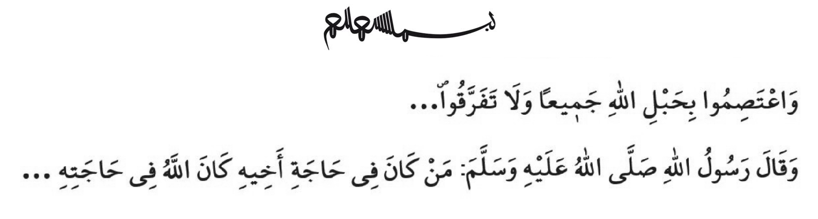 „მტკიცედ ჩაეჭიდეთ ყველანი ალლაჰის (რწმენის) თოკს, და არ დაიყოთ. გაიხსენეთ ალლაჰის სიკეთე (წყალობა) თქვენდამი“. (ალი იმრანი 3/103)